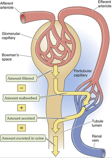 药物肾排泄=滤过-重吸收+分泌;或药物肾排泄率=(1-FR) (过滤率+分泌率)