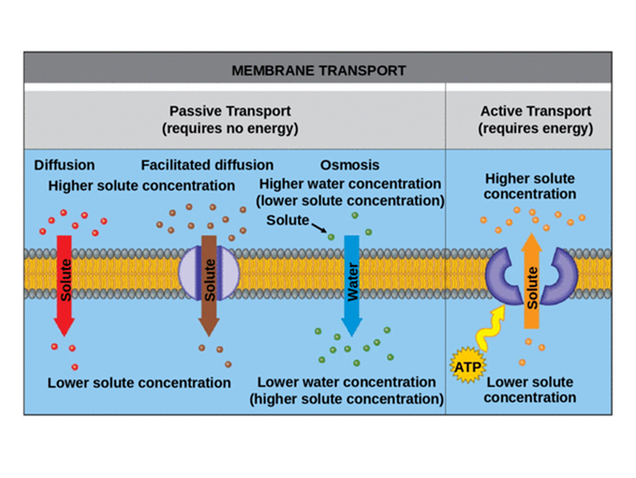 B、主动转运(active transport):需要能量 (通常来自 ATP 水解) 以对抗浓度梯度。