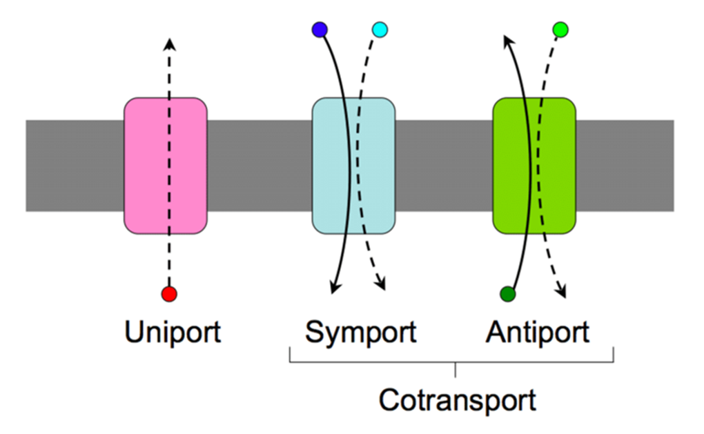 单转运、共转运、同向转运、反向转运(Uniport, Cotransport, Symport, and Antiport)