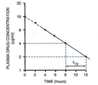 ● 零级动力学,药物t1/2与药物起始浓度成正比。药量大,t1/2长。