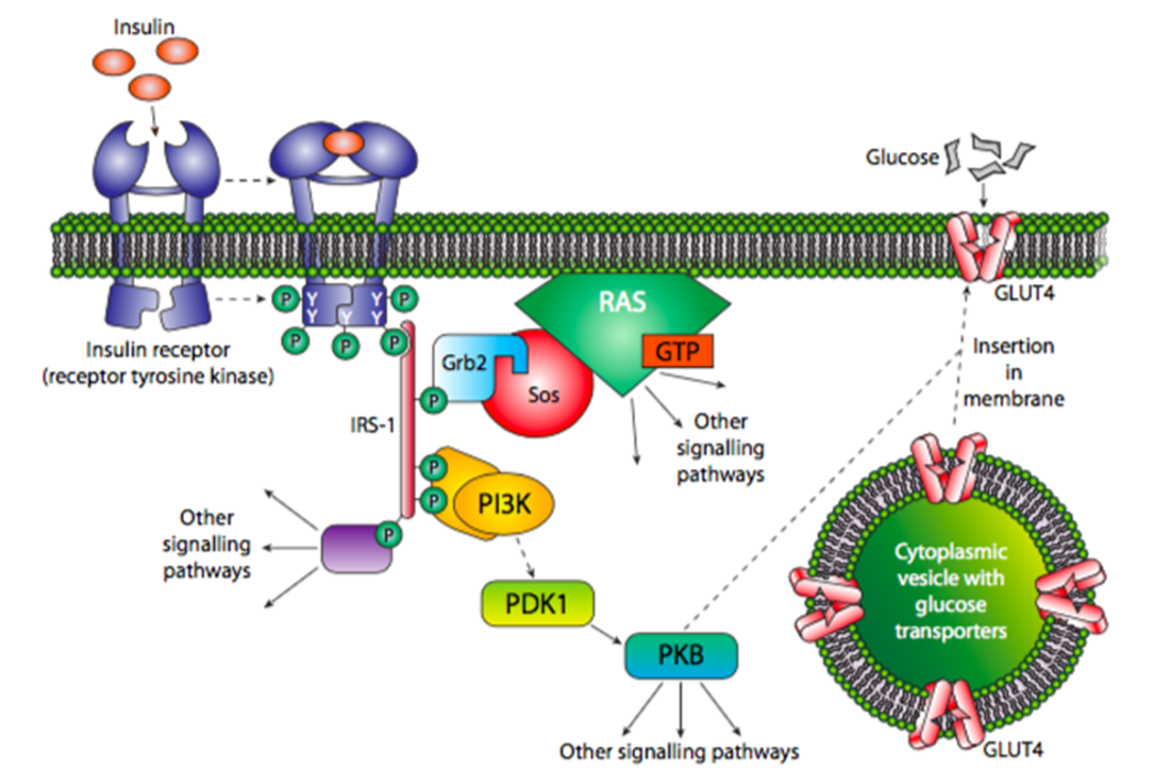 ● 胞内结构区具有酪氨酸激酶活性,磷酸化胞内域酪氨酸,激活下游信号通路。