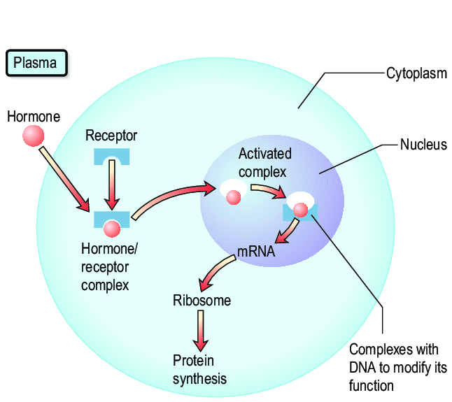 ● 脂溶性配体:蛋白激素 (甲状腺激素) 与类固醇 (糖皮质激素、盐皮质激素、维生素D、性类固醇)。