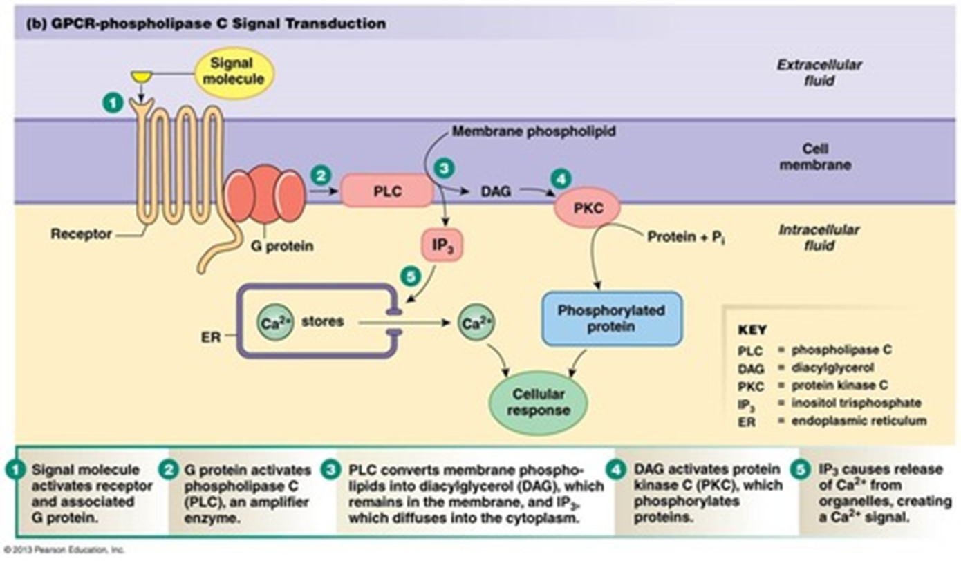 ● PLC催化膜磷酸酯 (PIP2) 转化为两个重要的第二信使,IP3 (三磷酸肌醇)和 DAG (甘油二酯)。