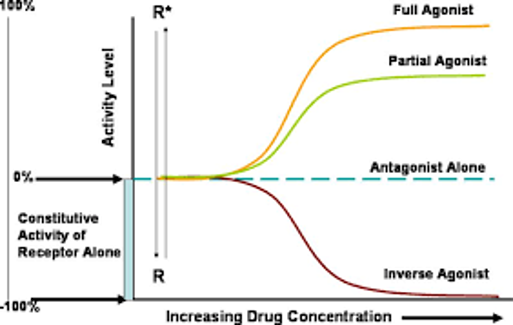 ● 反向激动剂:与受体结合并抑制受体的固有活性。