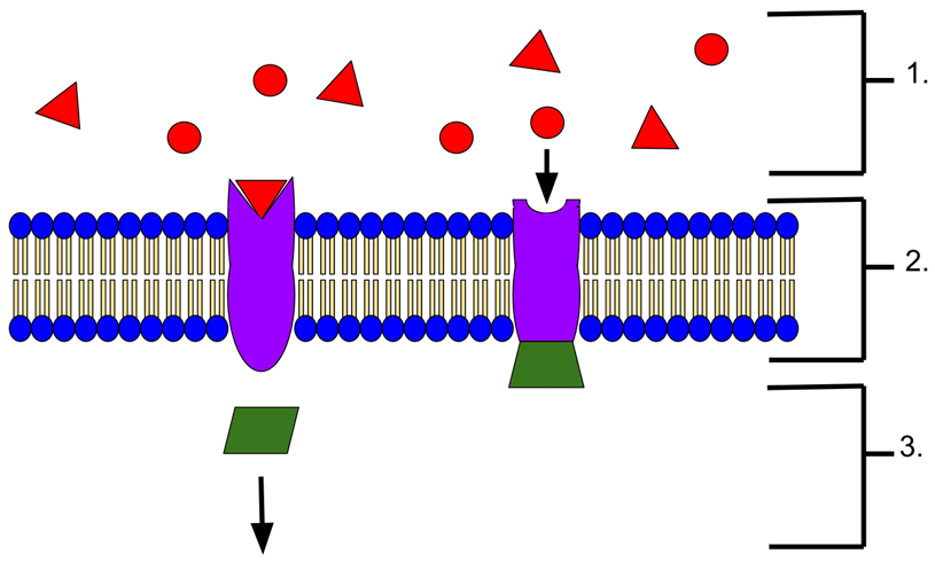 受体是与生物活性物质(神经递质、激素、活性肽、药物、毒素)结合并传递信息,引起生物学效应的跨膜或细胞膜内的生物大分子。与受体结合的物质为配体,也称第一信使。