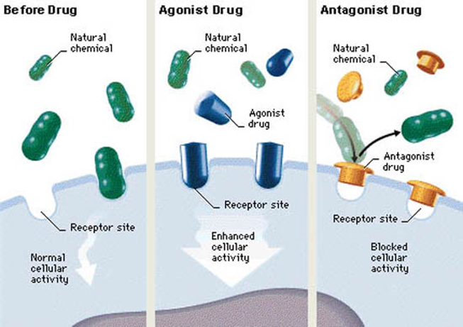 活化受体活性,激动剂 (agonist)抑制受体活性,拮抗剂 (antagonist)