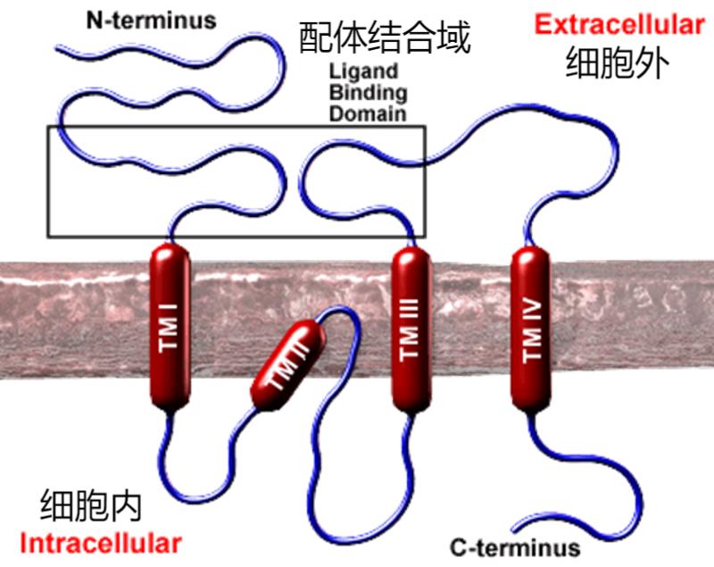 ● 配体种类多样,从单胺类到多肽和糖蛋白,配体结合域复杂。