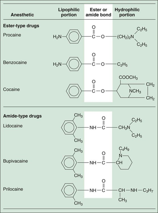 局部麻醉药:可逆性阻滞神经轴突内冲动的产生与传导,在保持意识清醒的状况下,使局部组织失去感觉的药物。 1、局限于给药部位。 2、疼痛感觉消失。 3、可逆性。扩散、药效消失、神经功能回复。![]() |