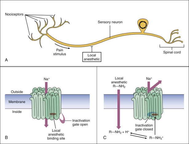 ● 局部麻醉药从膜内可逆地阻断Na+通道。