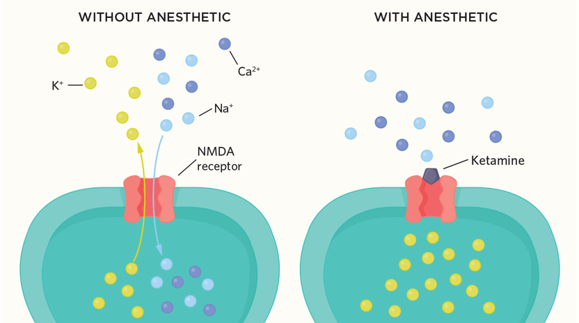 4、氧化亚氮、氯胺酮抑制谷氨酸NMDA受体。