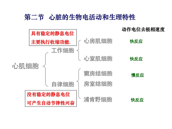 ● 仅小部分心脏细胞具有自律性,如窦房结的起搏细胞 (100次/分钟)。