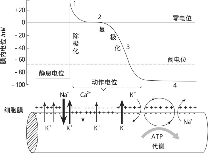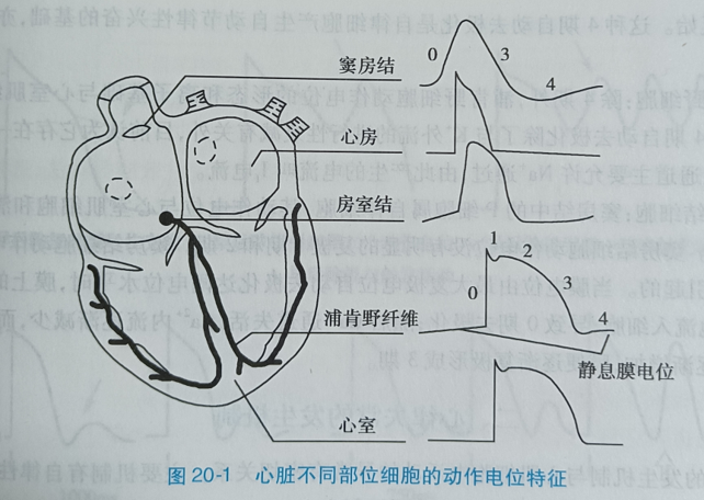 ● 动作电位:5个阶段。0期为去极化,1-4为复极化。