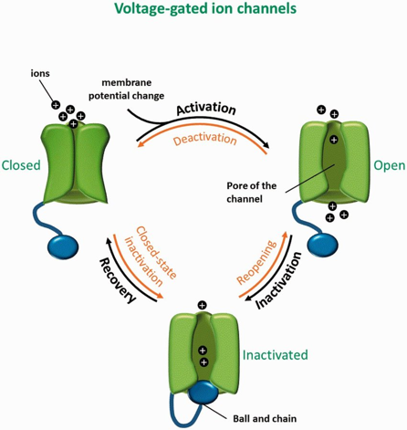 ● 兴奋产生电紧张电位激活电压门控Na+通道。