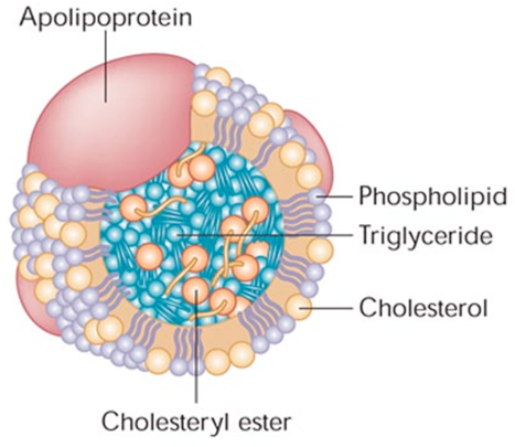 ● 外部磷脂,胆固醇,载脂蛋白 (apolipoproteins, apo)。