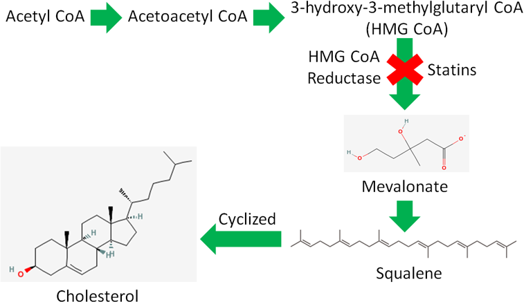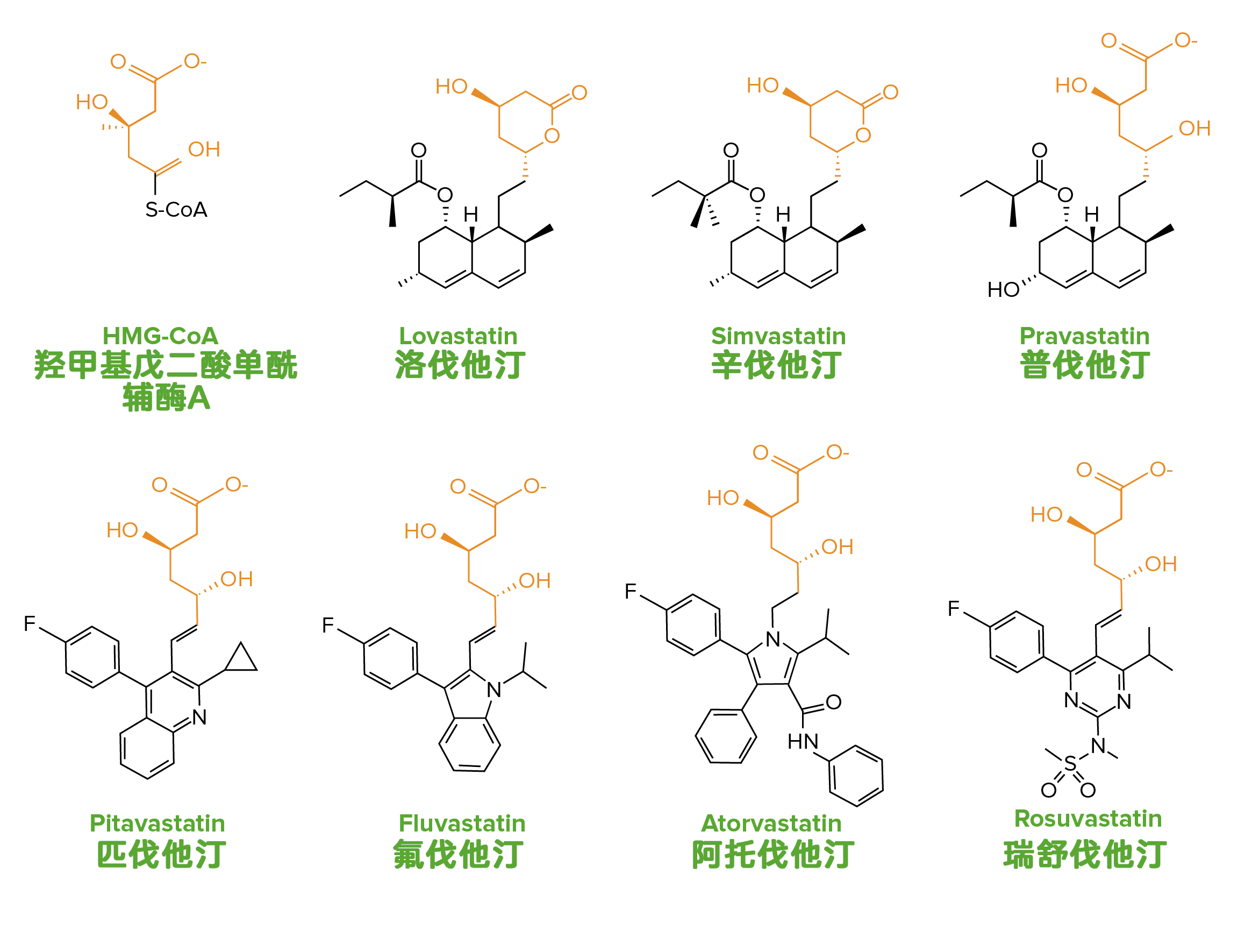 抑制羟甲基戊二酸单酰辅酶A (HMG-CoA)还原酶,减少内源性胆固醇的合成。