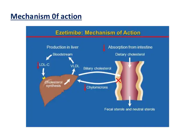 ● 抑制小肠细胞表达的NPC1L1胆固醇转运蛋白。