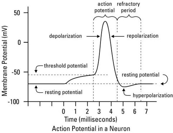 细胞活动的标志,信息传导的基本单元。电信号分去极化和超极化。