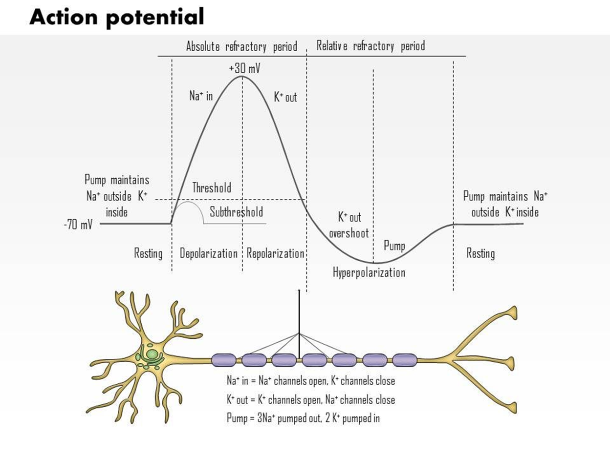 细胞活动的标志,信息传导的基本单元。电信号分去极化和超极化。