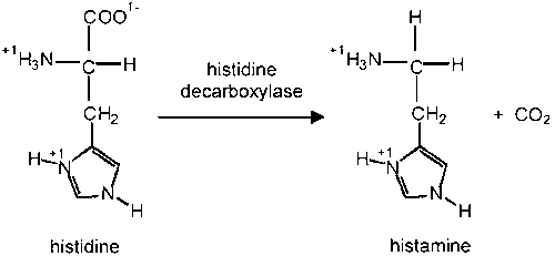 ● 组氨酸经组氨酸脱羧酶催化而来。