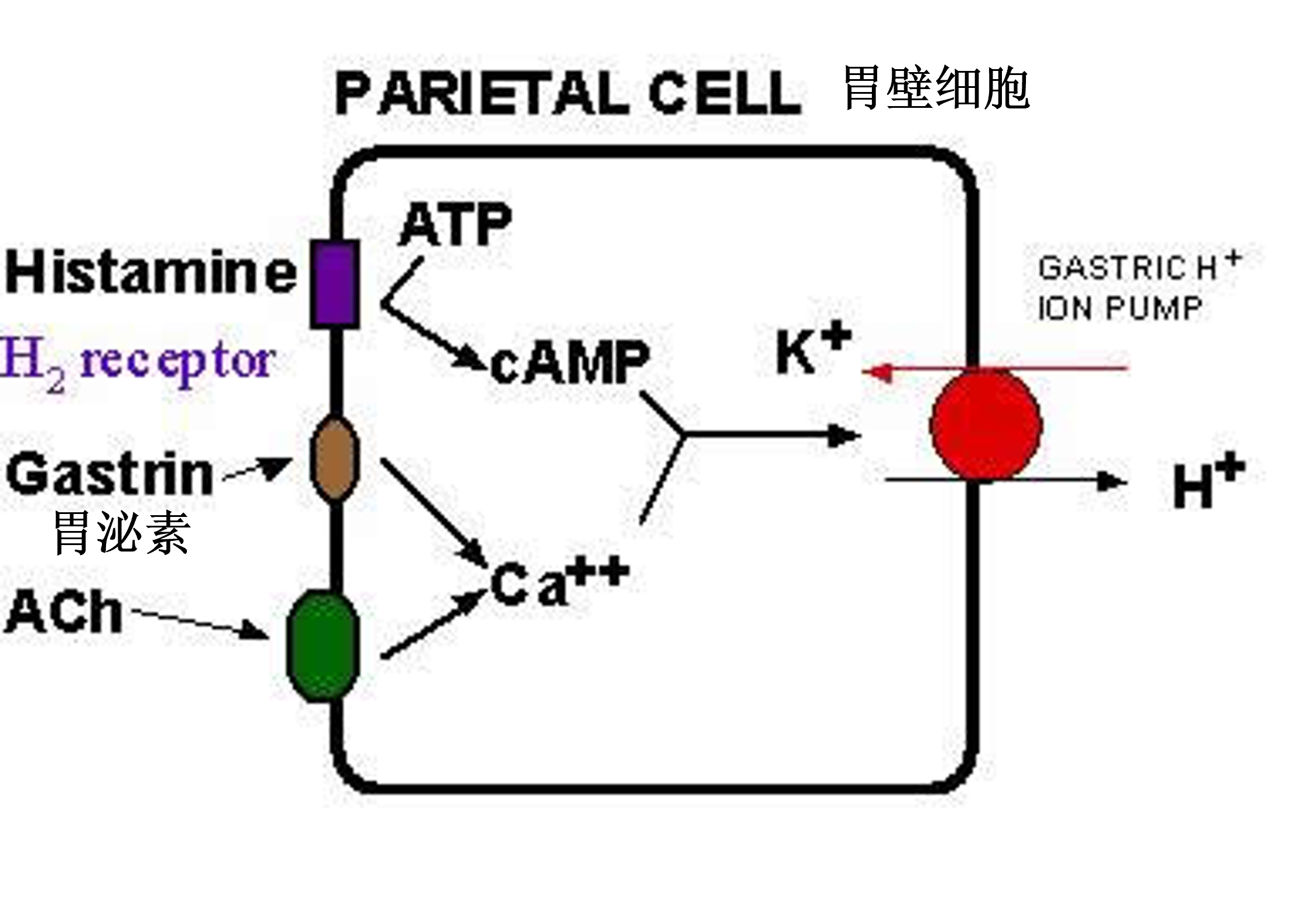 ● 腺体:胃酸分泌 (H2)