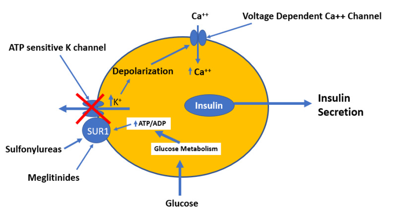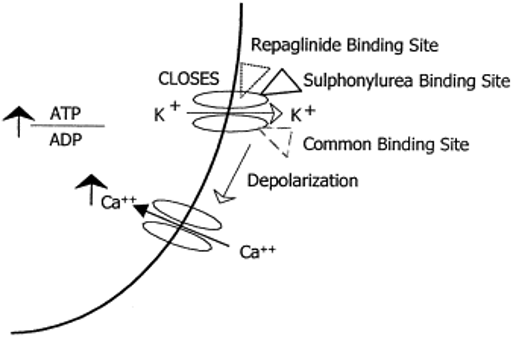 ● 直接结合胰岛β细胞ATP敏感钾通道,阻滞钾通道。