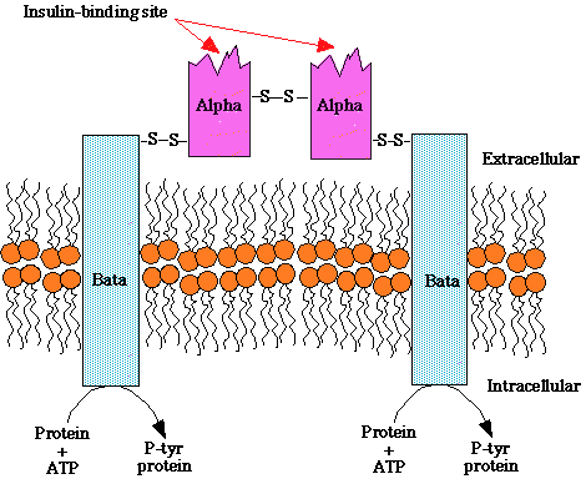 ● α亚基在膜外与胰岛素结合。