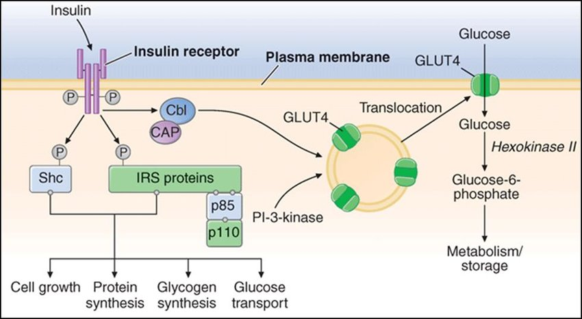 ● 产生生物学效应,包括糖转运、糖原合成、蛋白合成等。